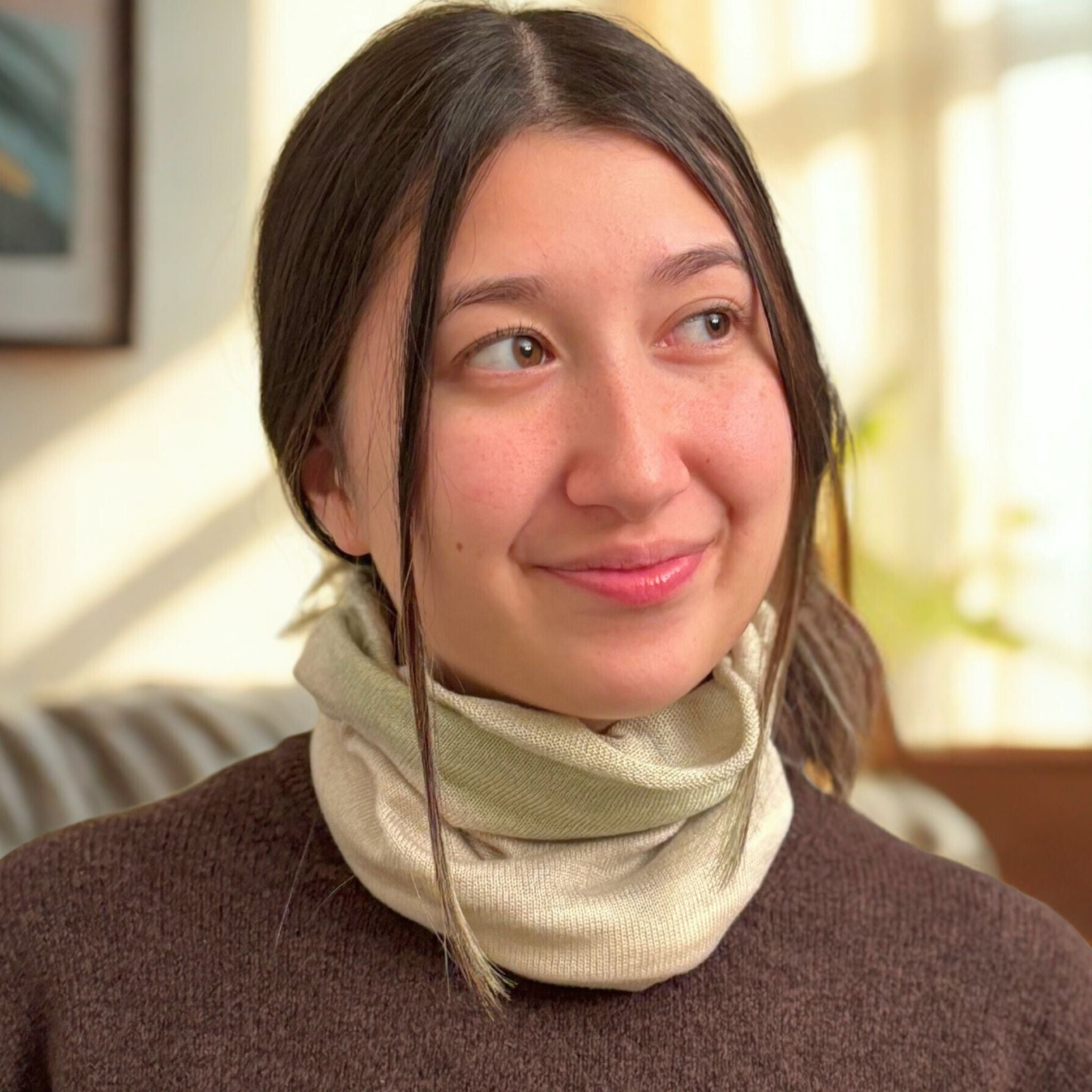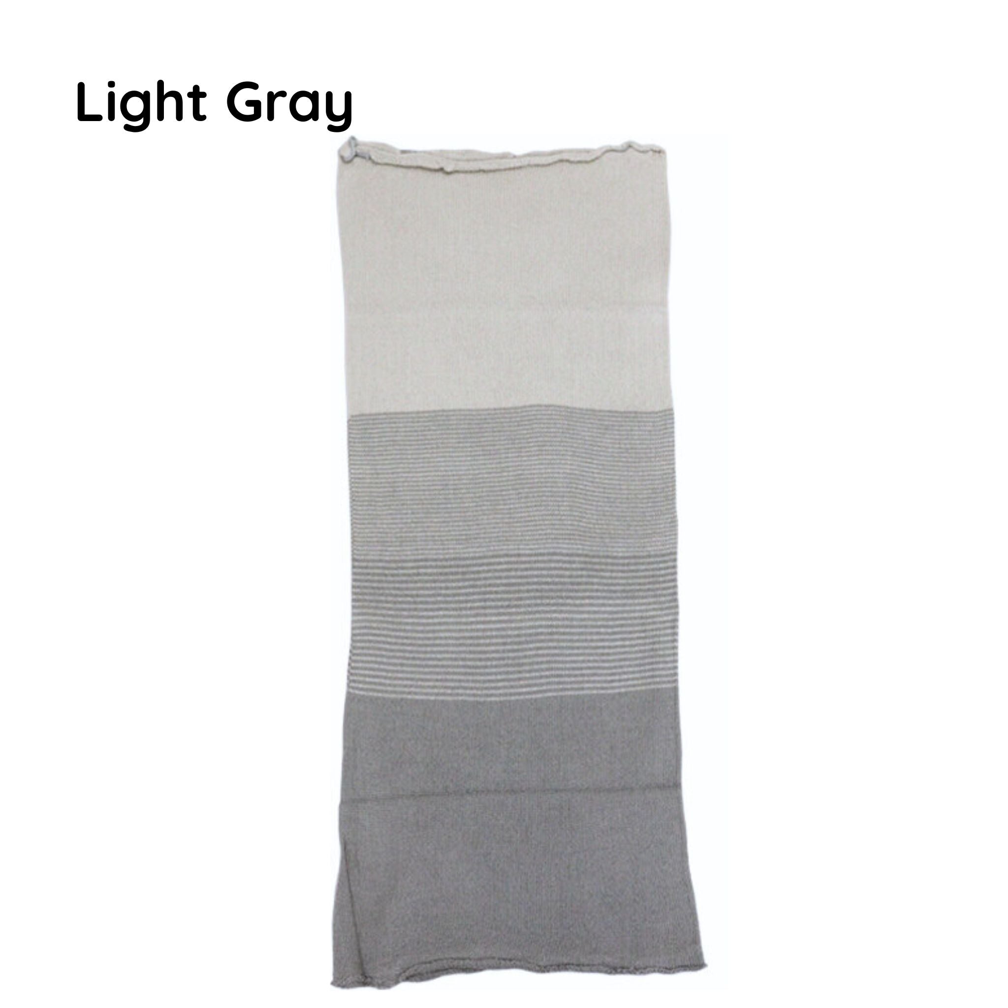 This 100% silk neck warmer features a subtle gradient design that softly shifts in color, creating a quiet sense of depth and elegance. Lightweight and breathable, it feels almost weightless on the skin while gently retaining warmth.