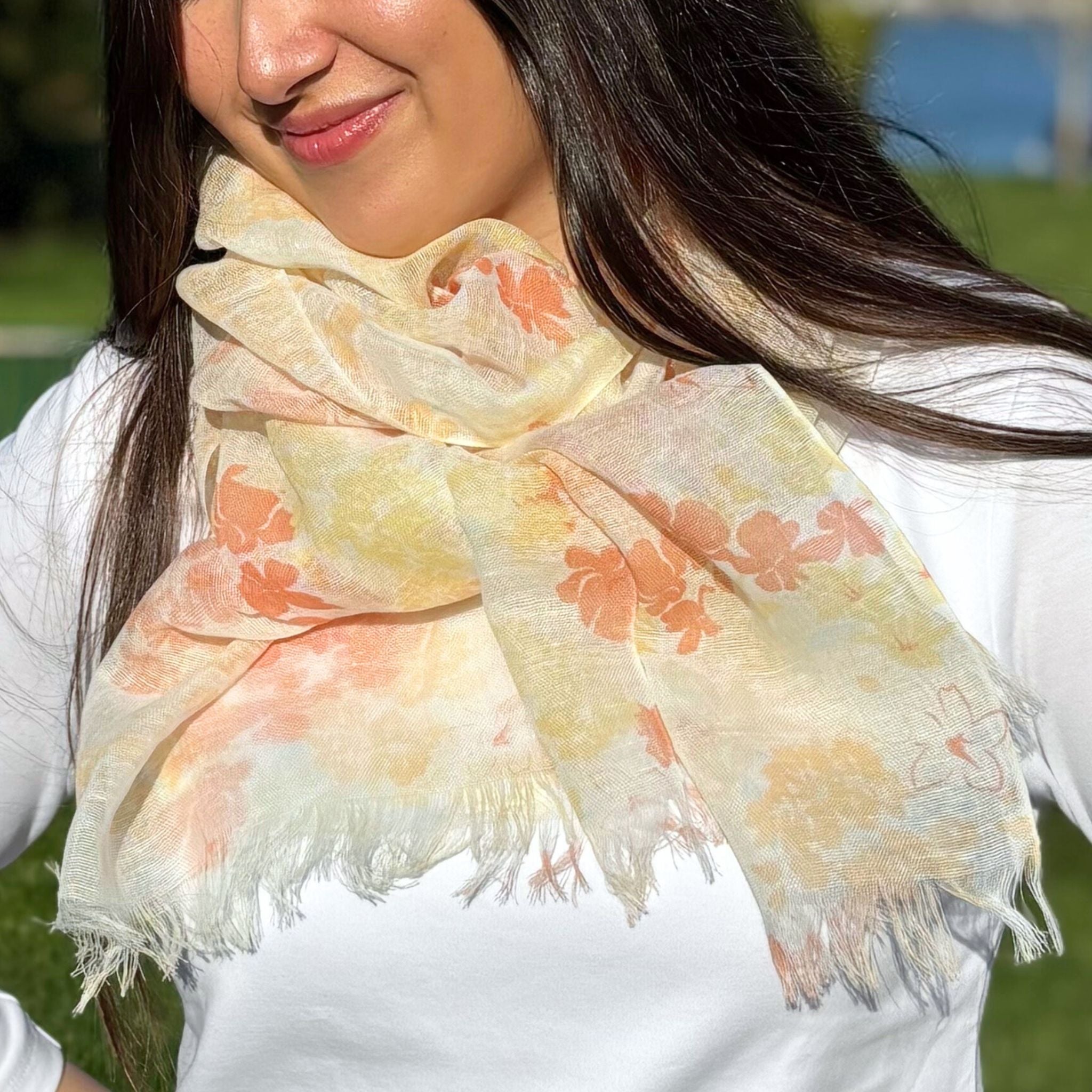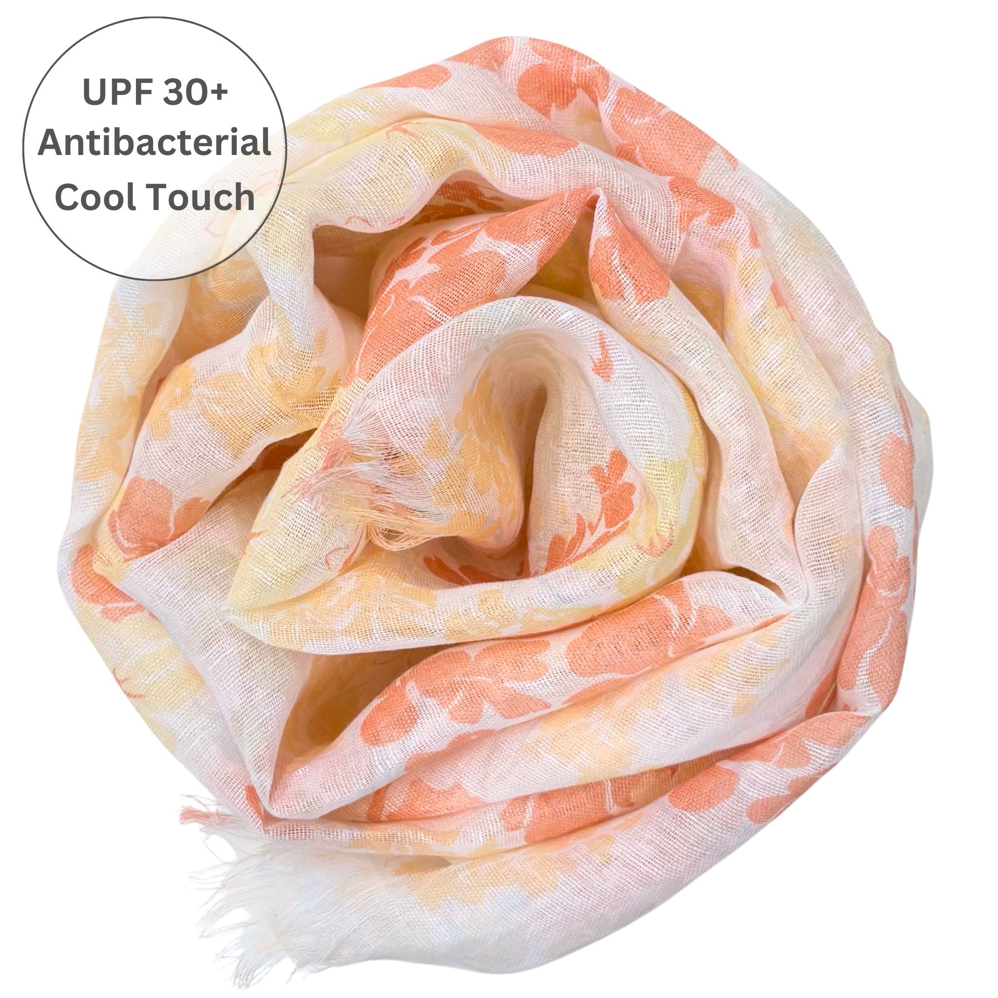 Stay Cool & Stylish UPF 30+ Linen Scarf with Botanical Flower Pattern!