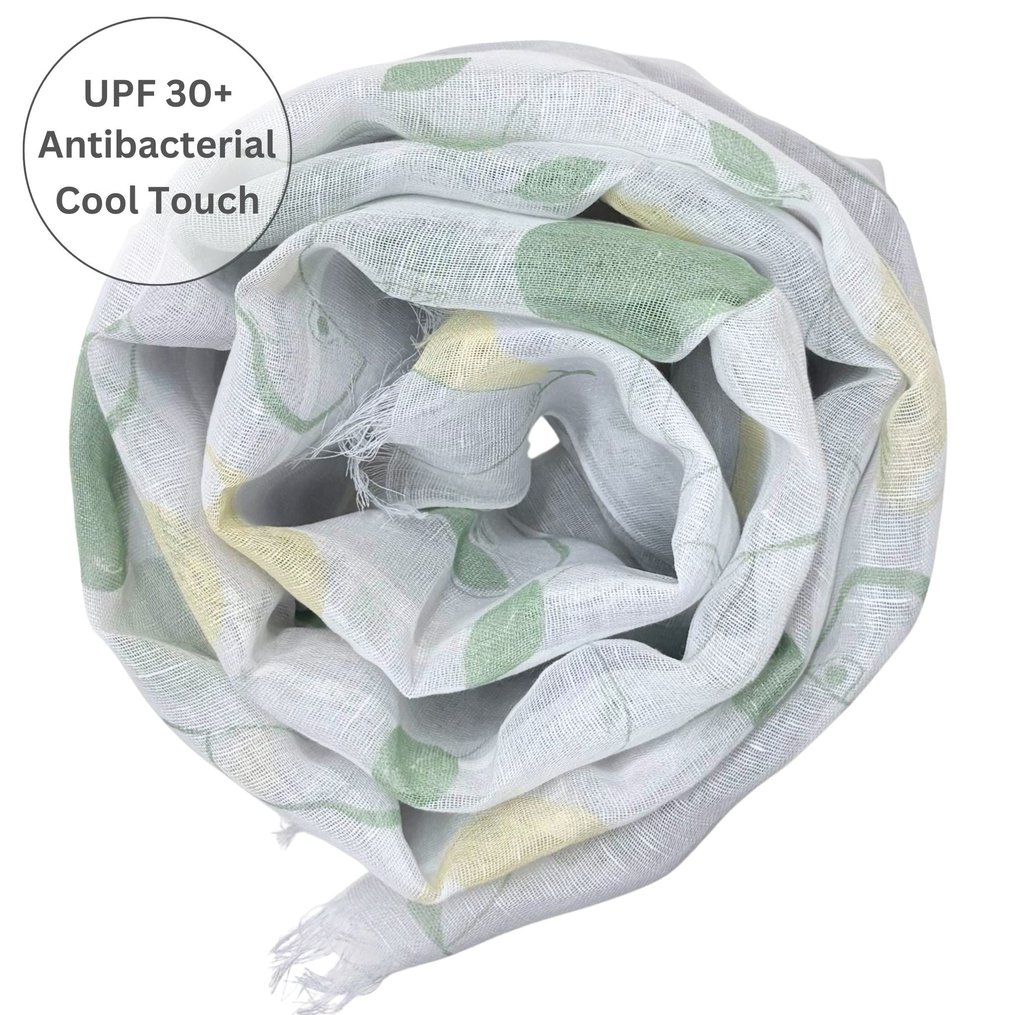 Stay Cool & Stylish — UPF 30+ Linen Scarf with Pear Pattern!