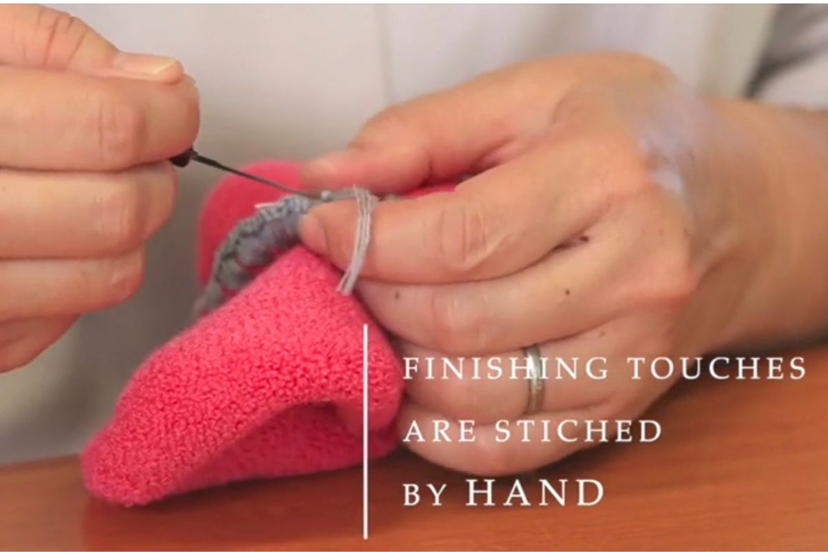 Which Japanese craftsmen use a needle to add these finishing touches to one sock at a time. The cuff’s finished embroidery shape resembles a cherrystone clam shell. This excellent craftsmanship impresses you with the feeling of preciousness, as if you have found a unique, treasured shell at the beach that you’d want to keep for years to come.